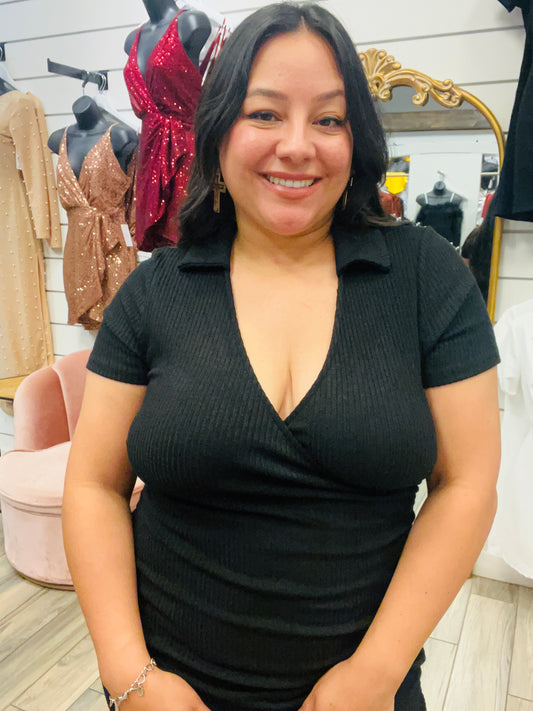 Black Casual Collared Dress
