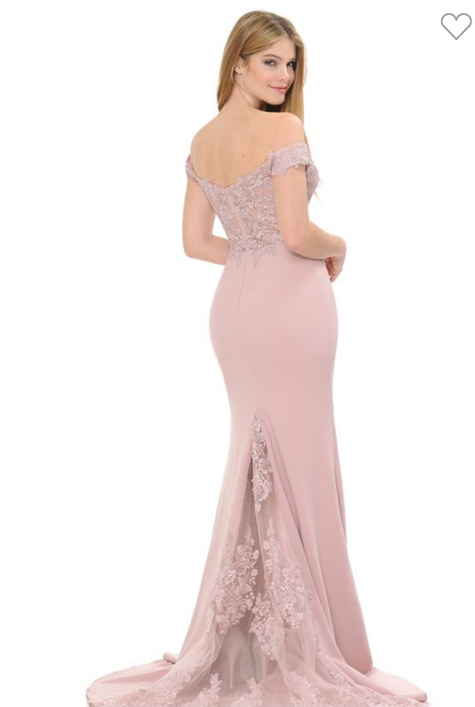 8134 Mauve Off The Shoulder Gown