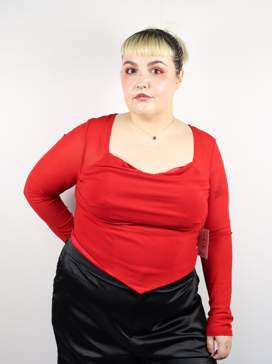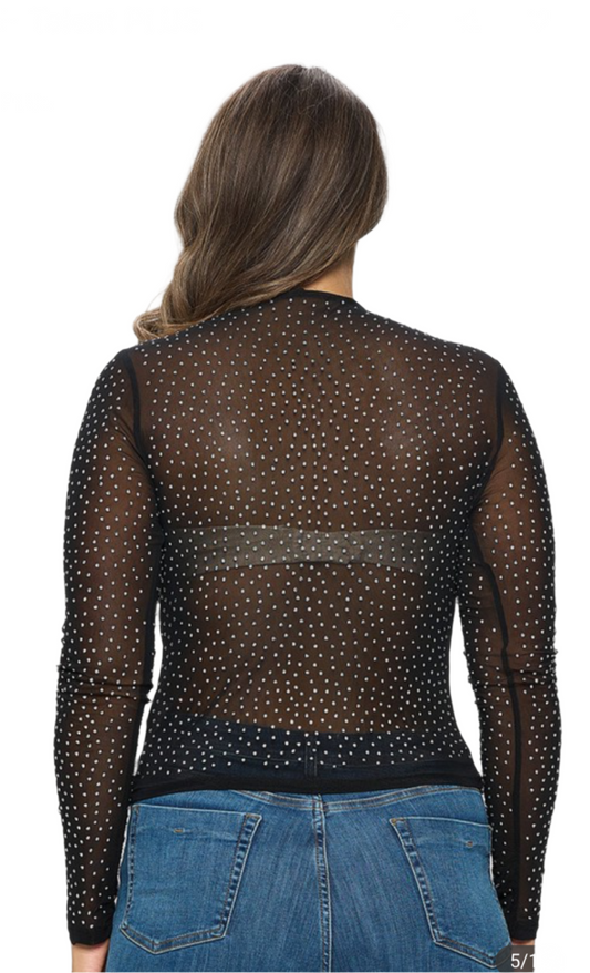 SHINE BRIGHT COWL NECK SHEER MESH TOP