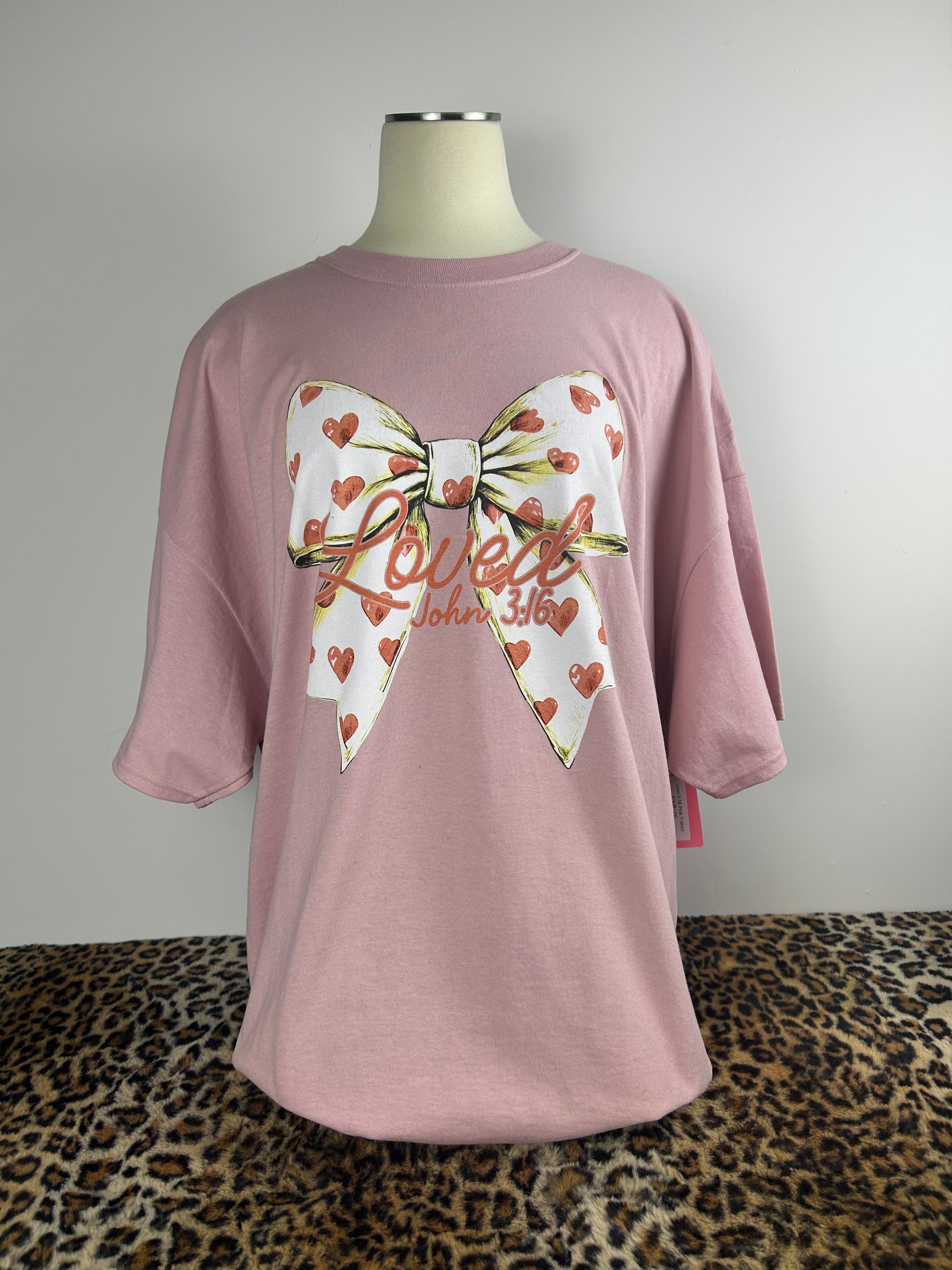 Embrace faith and style with this plus-size pink t-shirt, thoughtfully designed for modern believers. The classic John 3:16 scripture is prominently featured, paired with an elegant bow detail that adds feminine charm. Crafted for comfort and confidence, this tee serves as a meaningful way to express your spiritual values while enjoying everyday wear. Perfect for layering or wearing solo, it's a versatile piece that celebrates your faith with understated sophistication.